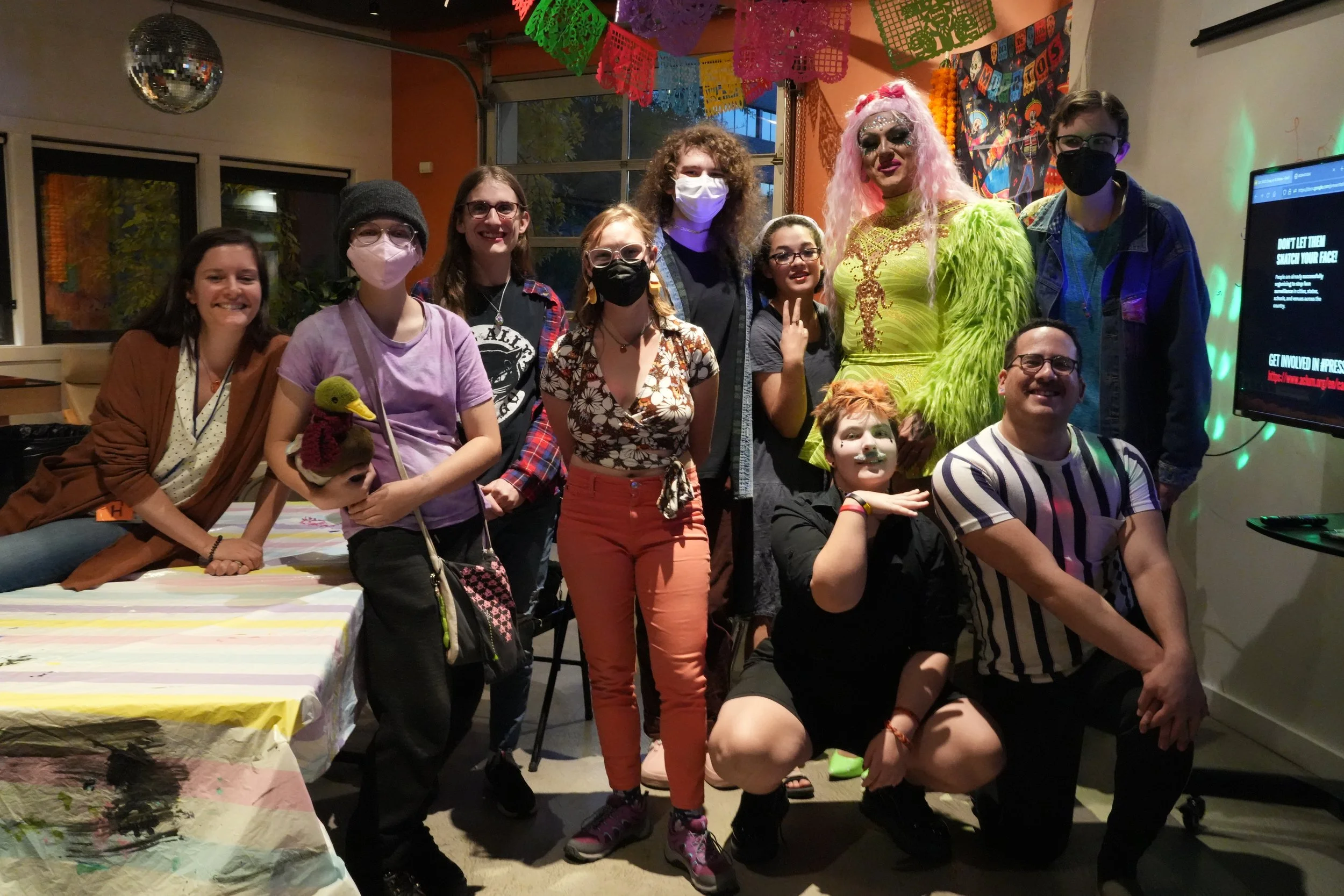 Last week, Creative Communities hosted its second year of Halloween-time Drag vs AI workshops in partnership with local LGBTQ+ organizations, Out Boulder County and OASOS . Cardi Acarrest and LeeLee Twirling Tech Goddess LaBeija led LGBTQ+ teens in two workshops about facial recognition technologies (FRTs), AI harm, and makeup art as a medium for joyful resistance of mass surveillance.