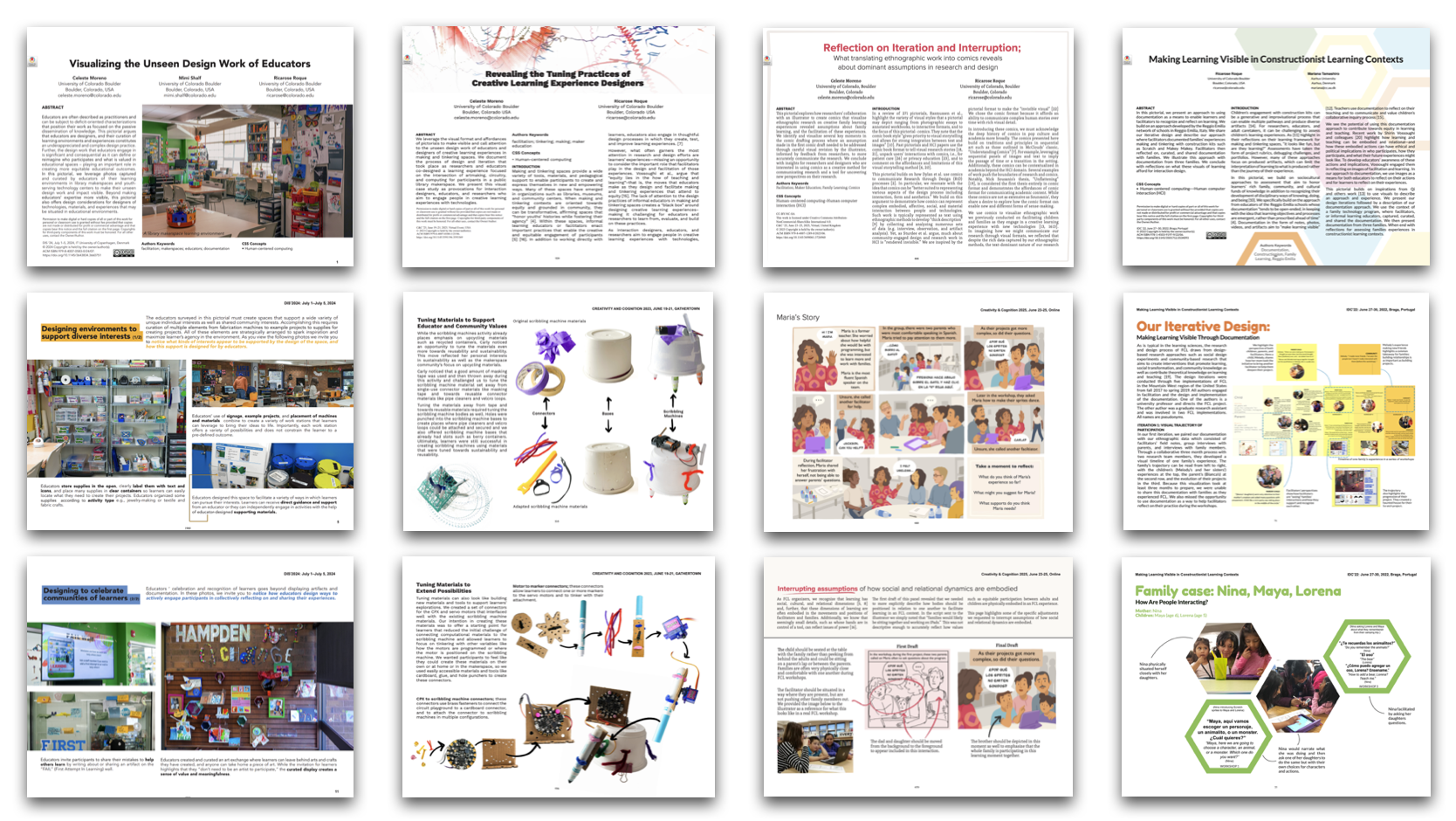Moreno, C., Shalf, M., Roque, R. (2024) Visualizing the unseen design work of educators. In Proceedings of ACM Designing Interactive Systems (DIS ‘24). Copenhagen, Denmark. (LINK)